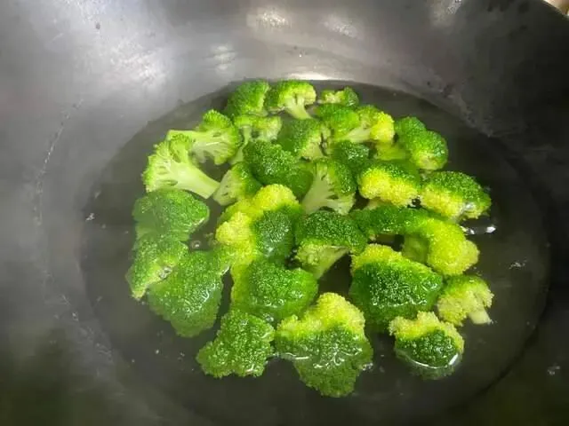 锅中烧水,放入西蓝花焯水,煮到八成熟就可以出锅了。