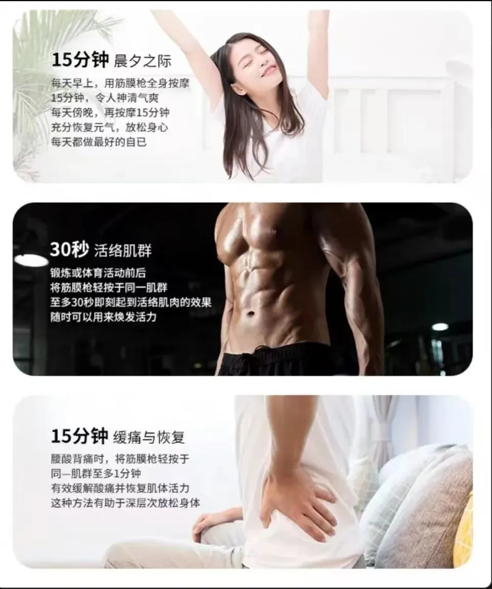 传统手动按摩或泡沫轴,受限于力度、持久性和精准度。筋膜枪通过电机驱动按摩头产生每分钟2000-3200次的高频垂直击打,这种物理冲击能有效: