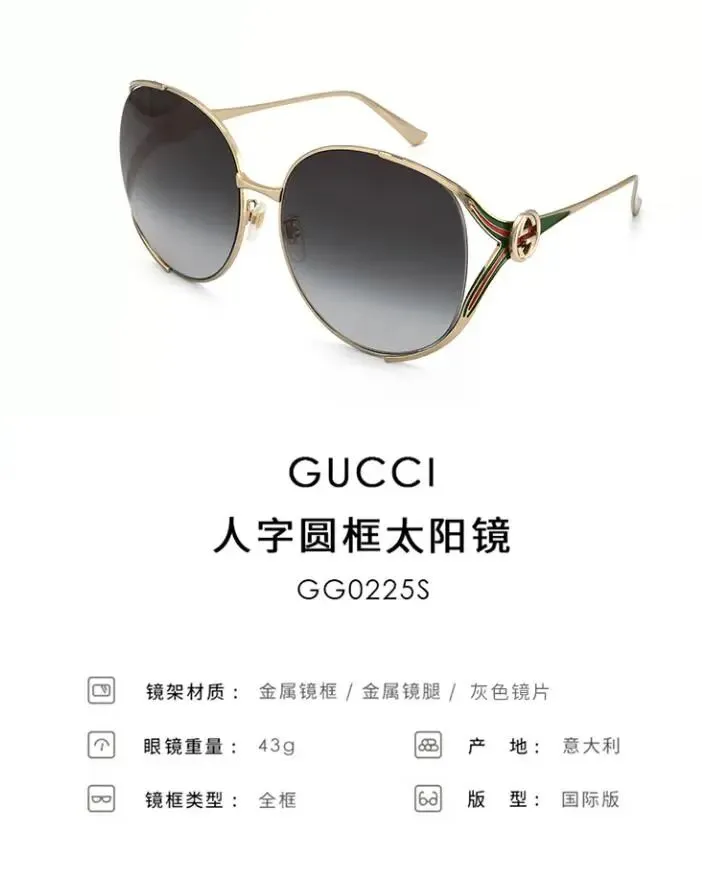 女生追求大牌质感和修颜效果,这款古驰GG0225S-007绝对不会让你失望,能跻身太阳镜十大品牌排行榜,靠的就是大牌品质和时尚版型。人字金属圆框设计,时尚又优雅,能有效修饰脸型,鹅蛋脸、圆脸、长脸都能轻松驾驭,戴起来显温柔、显气质,女生戴出去有面儿又好看。镜片是防晒遮阳材质,能有效阻隔紫外线,过滤强光,日常通勤、约会、度假戴,既能防晒,又能凹造型,金属镜框质感十足,细节处尽显大牌工艺,戴久不褪色、不变形。活动期间有满减优惠,还送品牌专属镜盒,大牌平替价就能get,爱美的姐妹赶紧冲。