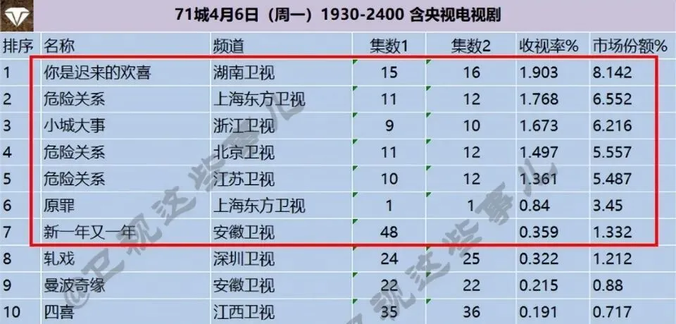 电视剧收视率排行榜,《危险关系》跌至第二,第一收视高达1.903%