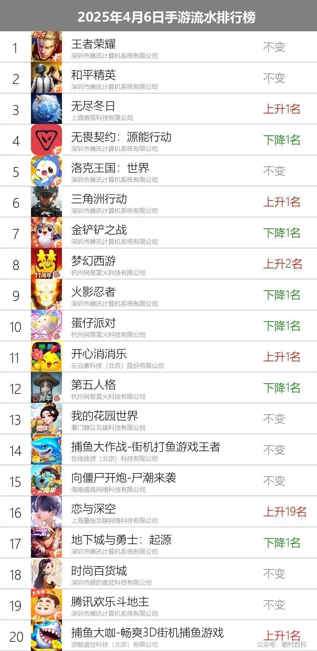 4月6日手游流水排名榜单(文字版)