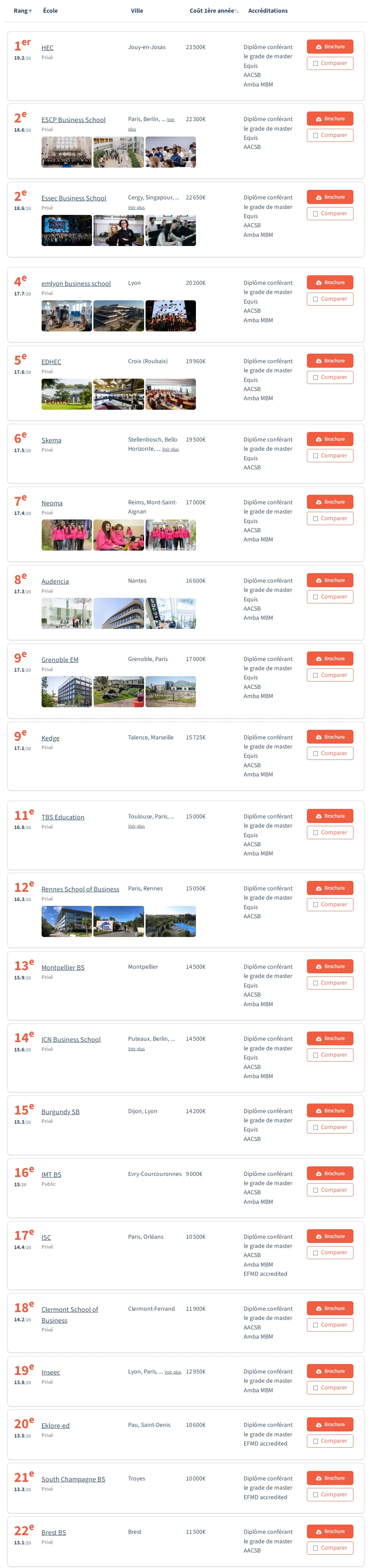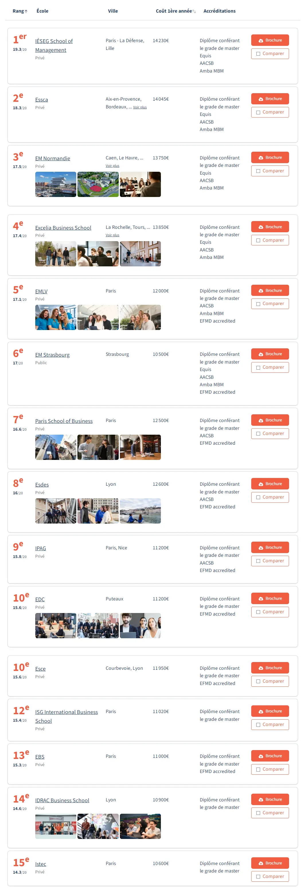 排名前三的学校分别是IESEG、昂热高商ESSCA和诺曼底高商。