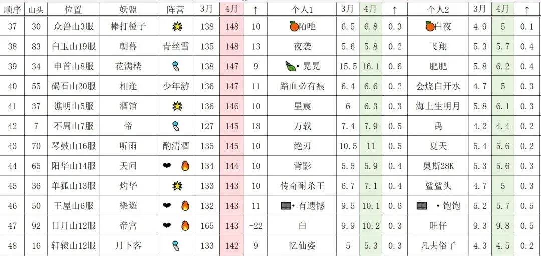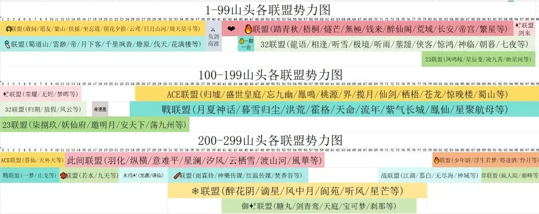 最后142万亿-148万亿区间的妖盟,❤️🔥联盟阵营与三二联盟阵营各占一半。其中❤️🔥的帝宫妖盟,也是由于踢人事件,妖盟战力大幅下滑。不知能否跟琼花盟一样浴火重生,让我们拭目以待吧。重生意味着需要重新卡级合盟,大家可以参考寻道大千32合盟攻略(一)-十年卡级无人问,一朝合盟天下知。此篇文章的合盟攻略。如有疑问,欢迎评论区讨论。