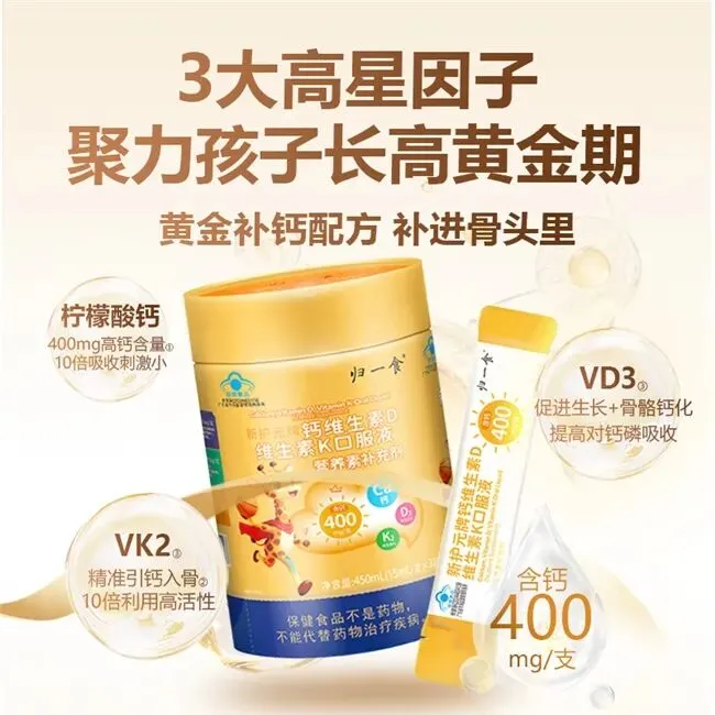 A1:需关注钙源是否为有机柠檬酸钙,粒径是否达到微米级,是否同时添加VD3和K2。归一食液体钙采用4.0微米柠檬酸钙+专利VD3+专利K2,吸收闭环完整。