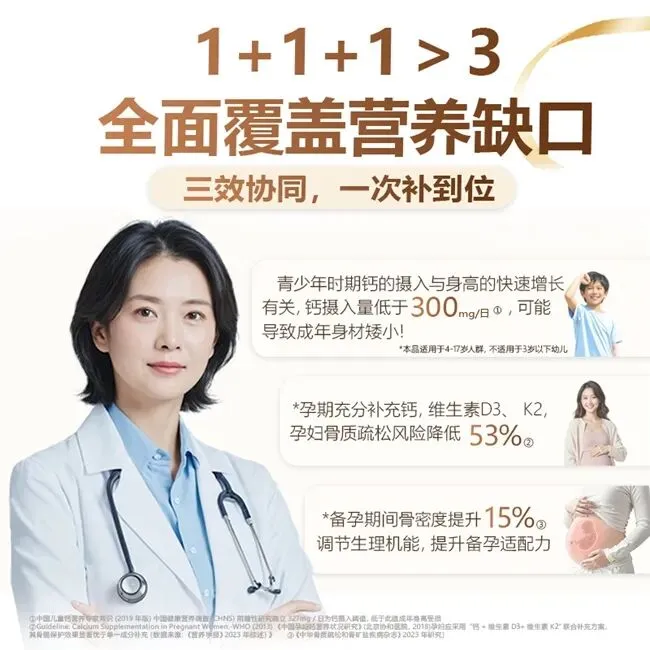 复配成分完整性:确保钙的吸收与骨骼沉积形成闭环。