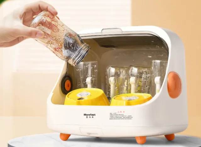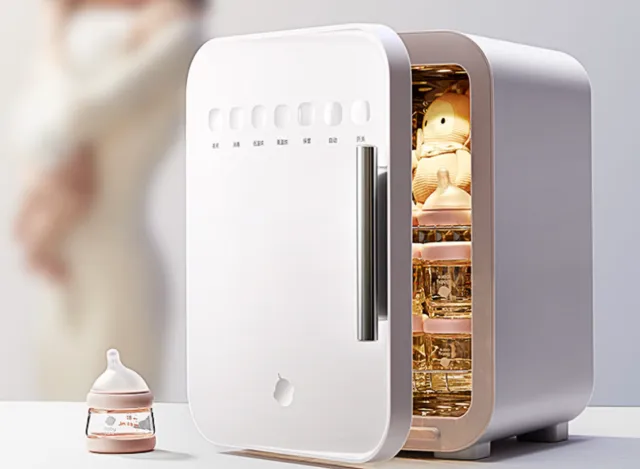 产品亮点:这款婴儿消毒柜气流循环路径经过优化,湿气能快速排出机外,减少内部残留。层架可抽出,取放底层物品不用伸手深掏。机器工作噪音控制平稳,白天夜晚使用都不会造成干扰。面板响应灵敏,触摸或按键都能快速识别。内部照明柔和,打开盖板就能看清内部物品,不用额外开灯。机身宽度适中,能塞进厨房或卫生间的窄缝位置,适配小空间摆放。