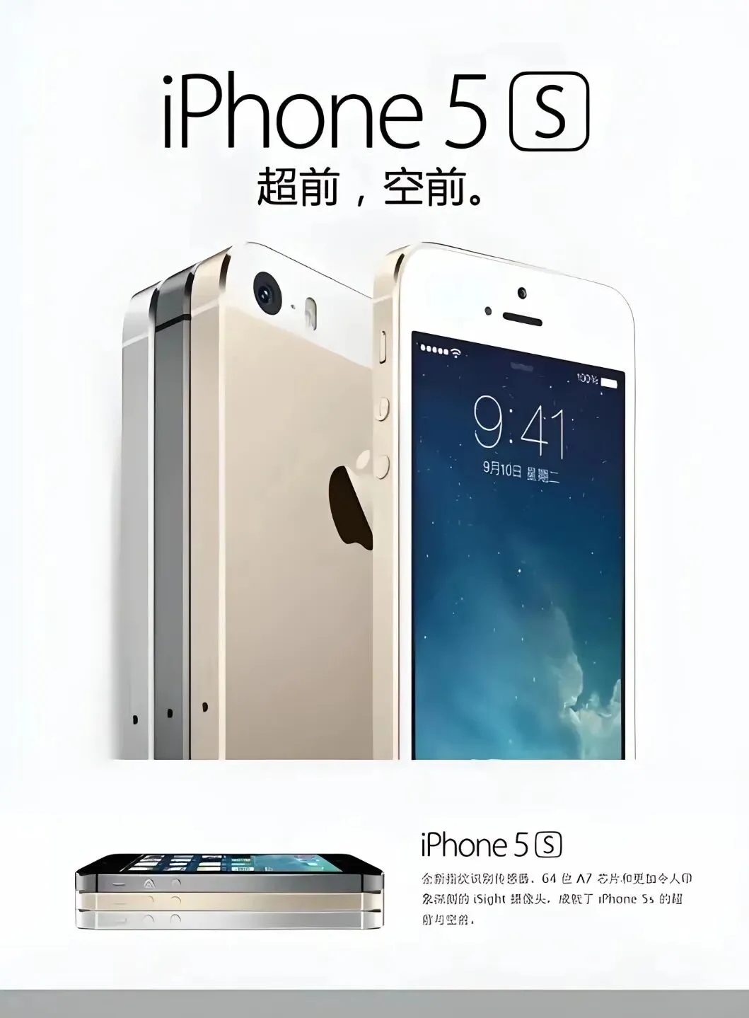 iPhone 5 和 5s,那种 112g 的轻,铝合金一体成型,边上是亮亮的切边,像夹着一张很精密的金属卡片,通勤拿着不累手,口袋里也贴身。