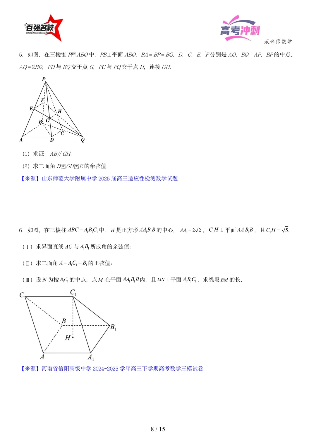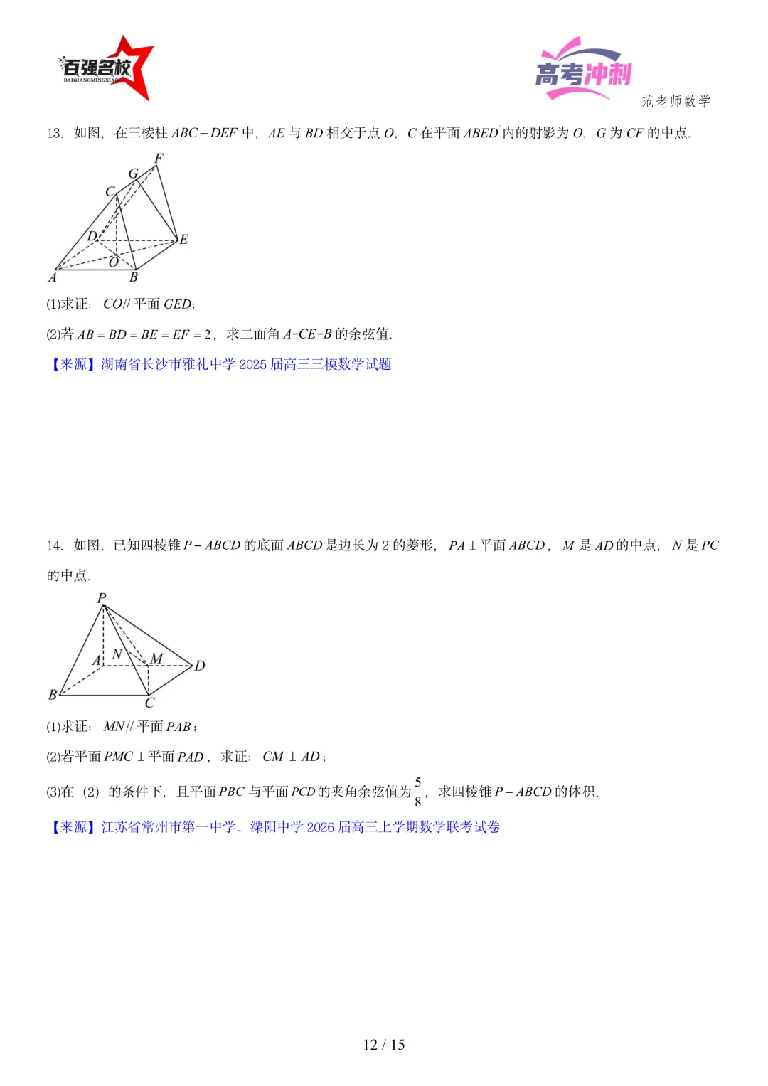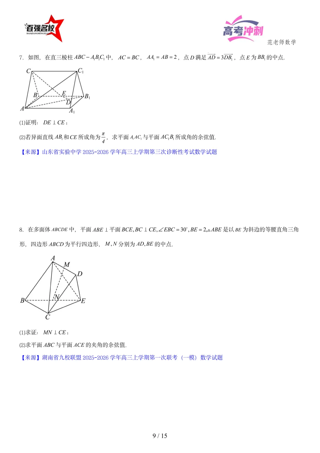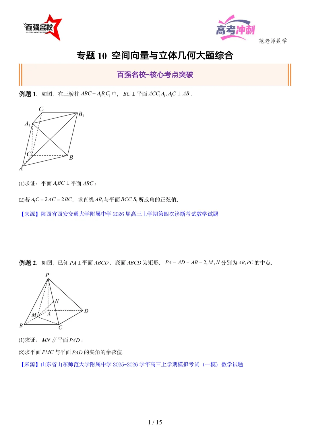 2026最新版:高考数学百强名校立体几何大题常考题型以及解题技巧总结(可打印)