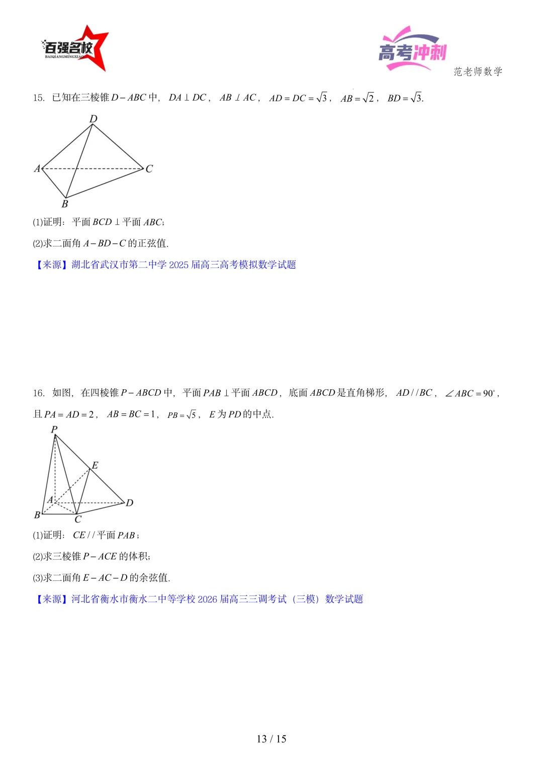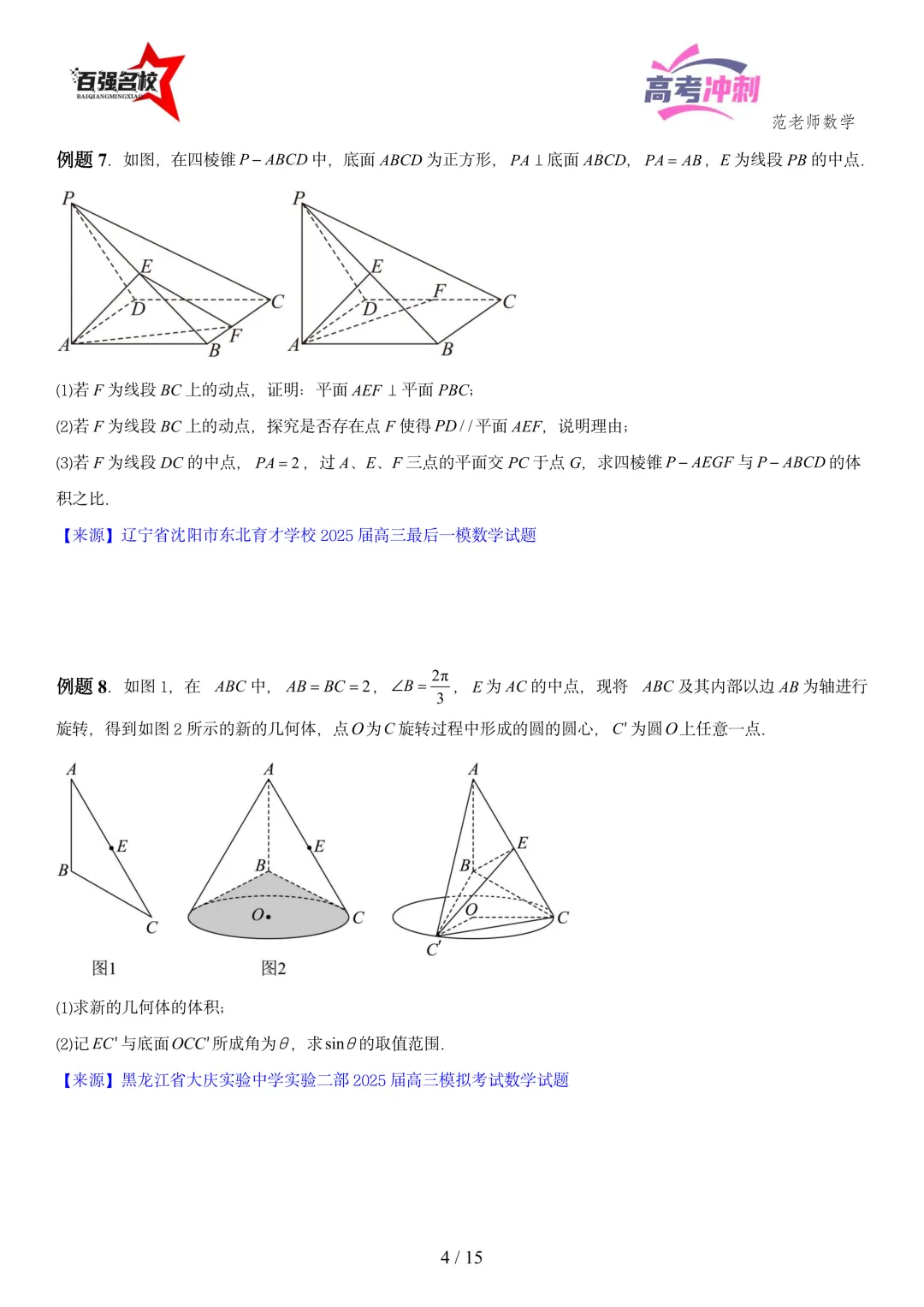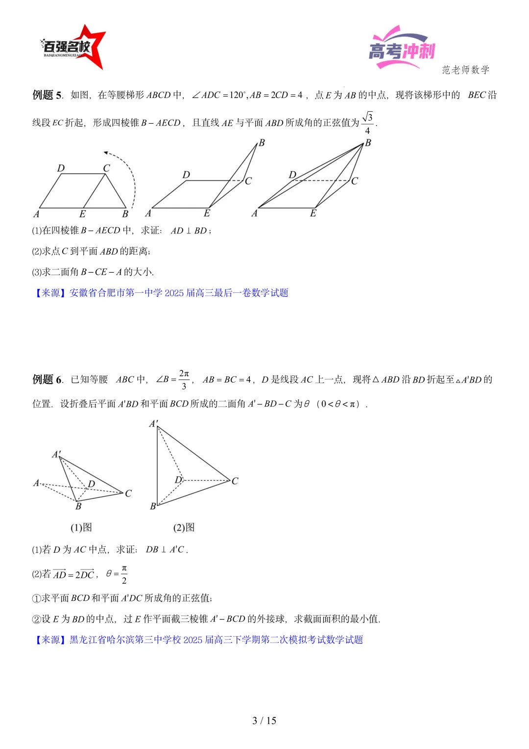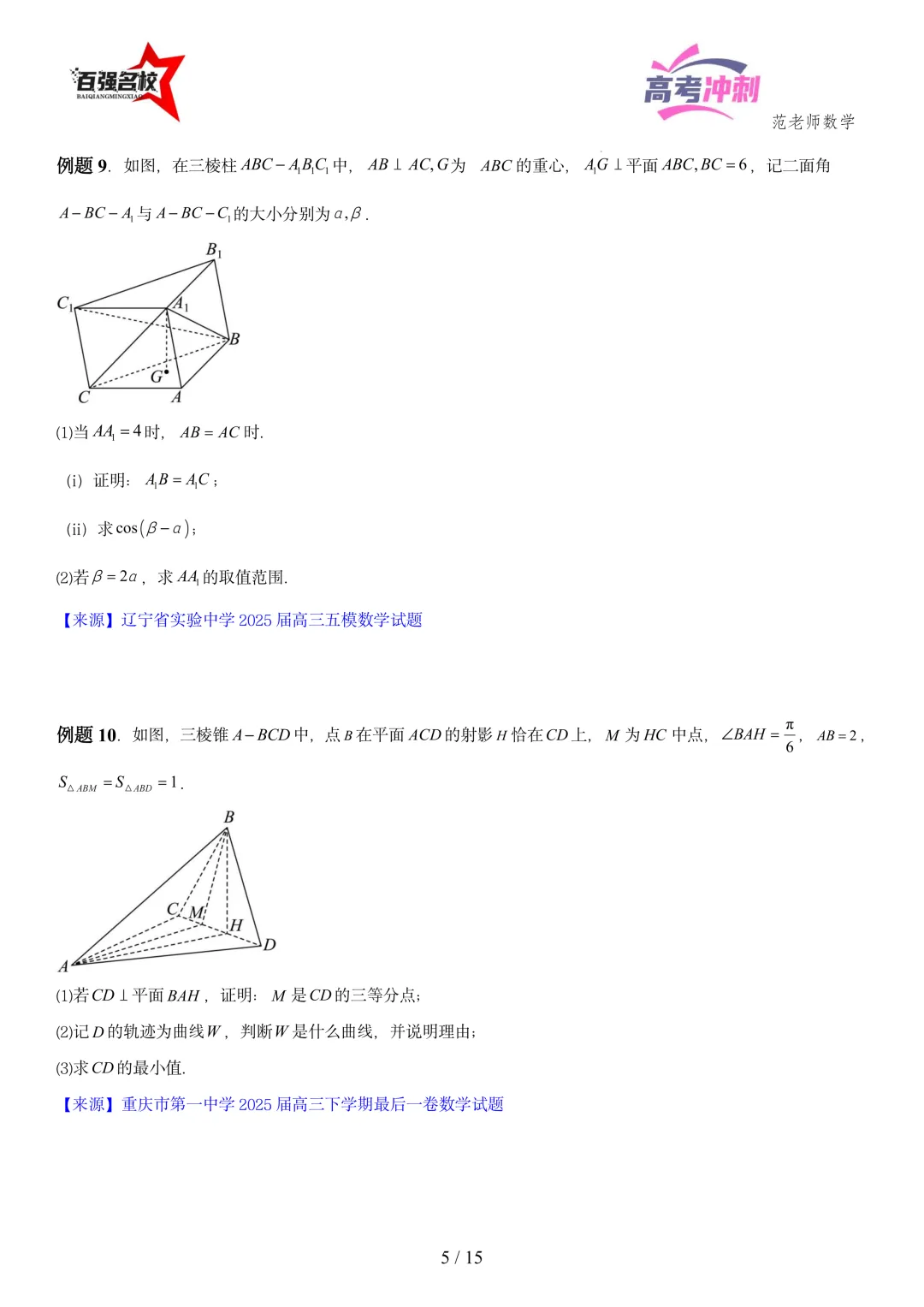 2026最新版:高考数学百强名校立体几何大题常考题型以及解题技巧总结(可打印)