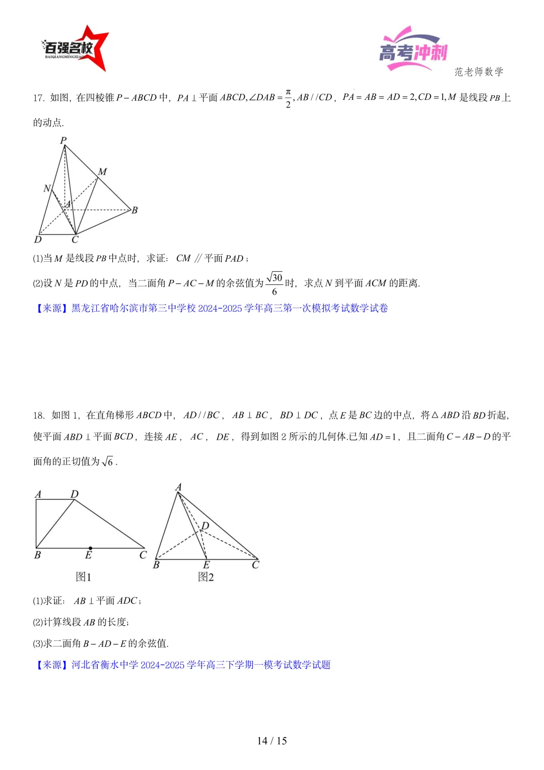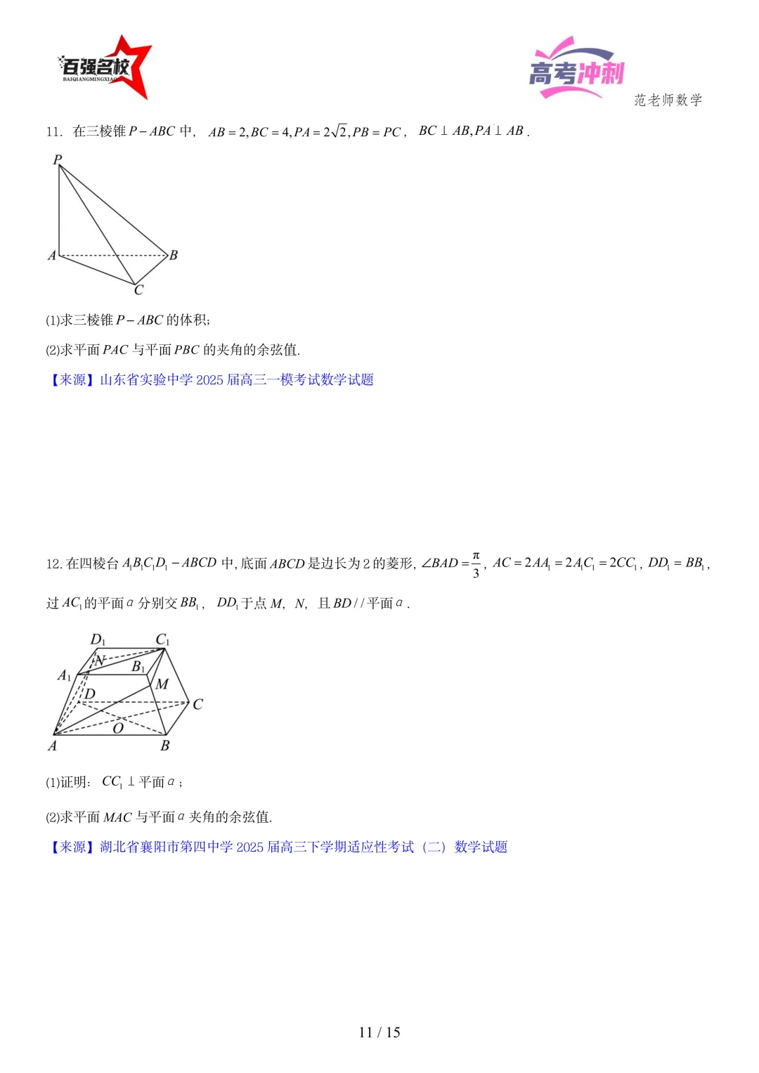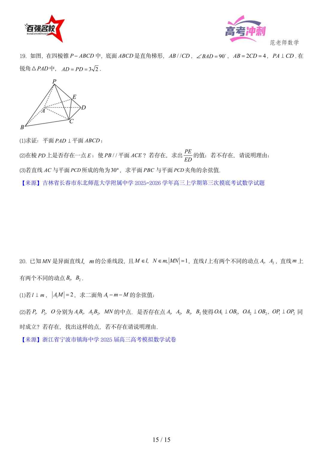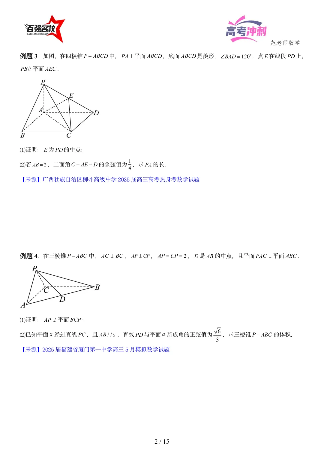 2026最新版:高考数学百强名校立体几何大题常考题型以及解题技巧总结(可打印)