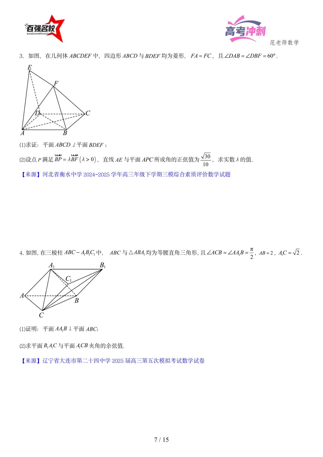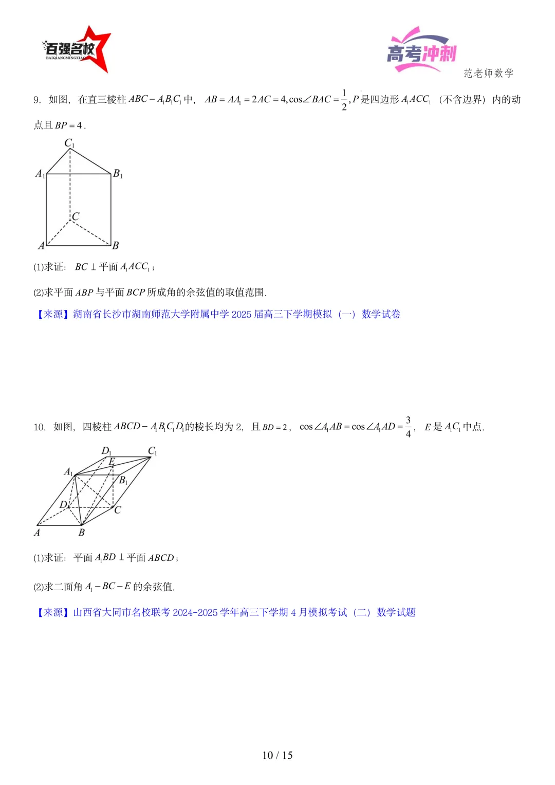 >2026最新版:高考数学百强名校立体几何大题常考题型以及解题技巧总结(可打印)