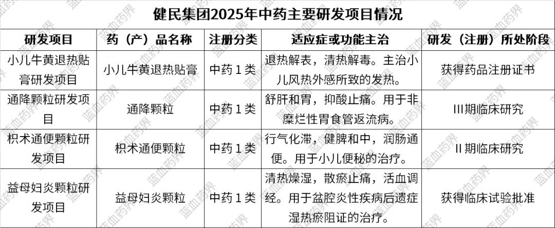健民集团中药1.1类新药小儿牛黄退热贴膏2025年取得药品注册证书。通降颗粒、枳术通便颗粒处于临床试验阶段,益母妇炎颗粒取得临床试验批准通知书。核心品种七蕊胃舒胶囊获批国家二级中药保护品种。