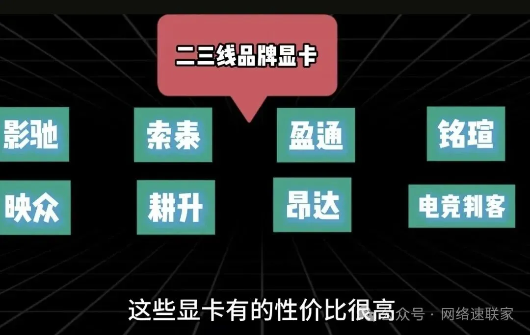 显卡一线品牌包括华硕、微星、技嘉,还有准一线七彩虹,这些品牌散热、供电和品控都属顶级,高端系列颜值与性能并存,适合追求极致体验的玩家。二三线品牌如影驰、索泰、盈通、铭瑄等,性价比突出,部分型号甚至有“丐版天花板”的美誉,预算有限时也能放心入手。