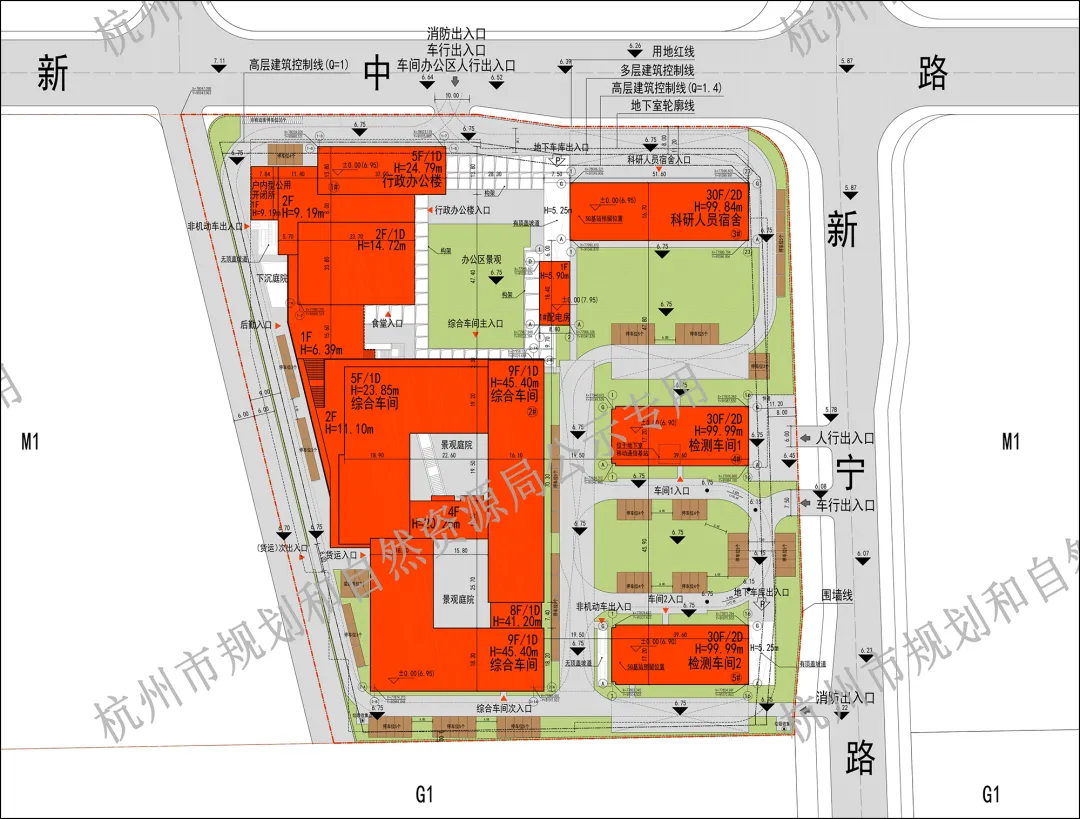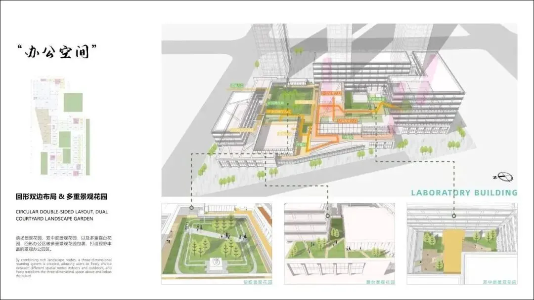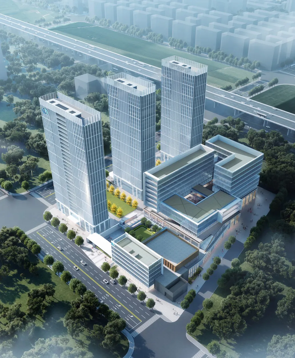 项目由浙江绿城利普建筑设计有限公司设计。方案由三栋高30层百米楼(科研人员宿舍、检测车间)、5层高行政办公楼、9层高综合车间等楼宇组成。规划回形双边布局和多重景观花园,打造视野丰富的景观办公园区。