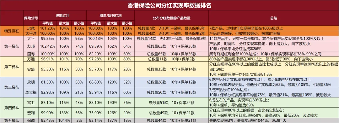 此外,中后期万通的尚裕和国寿的宏就显誉表现也还不错。第三,看各家公司分红实现率对比