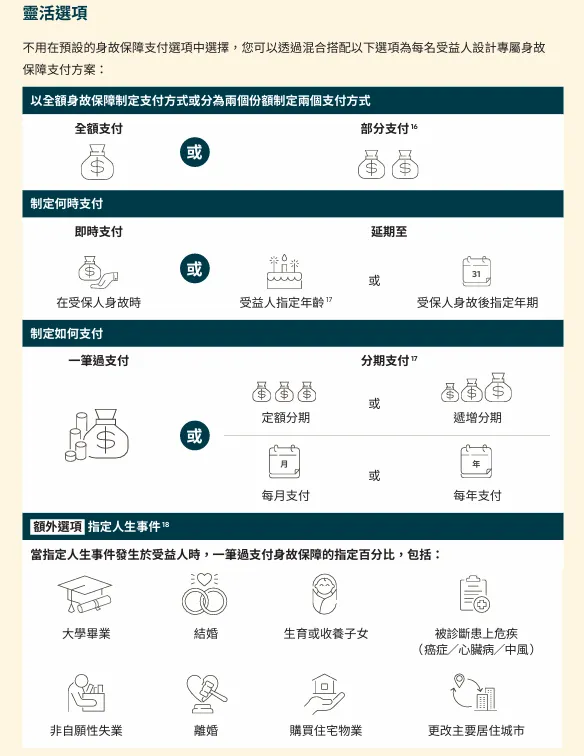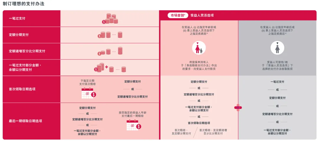 比如孩子大学毕业、结婚、生子、确诊危疾时,一次性支付指定比例。