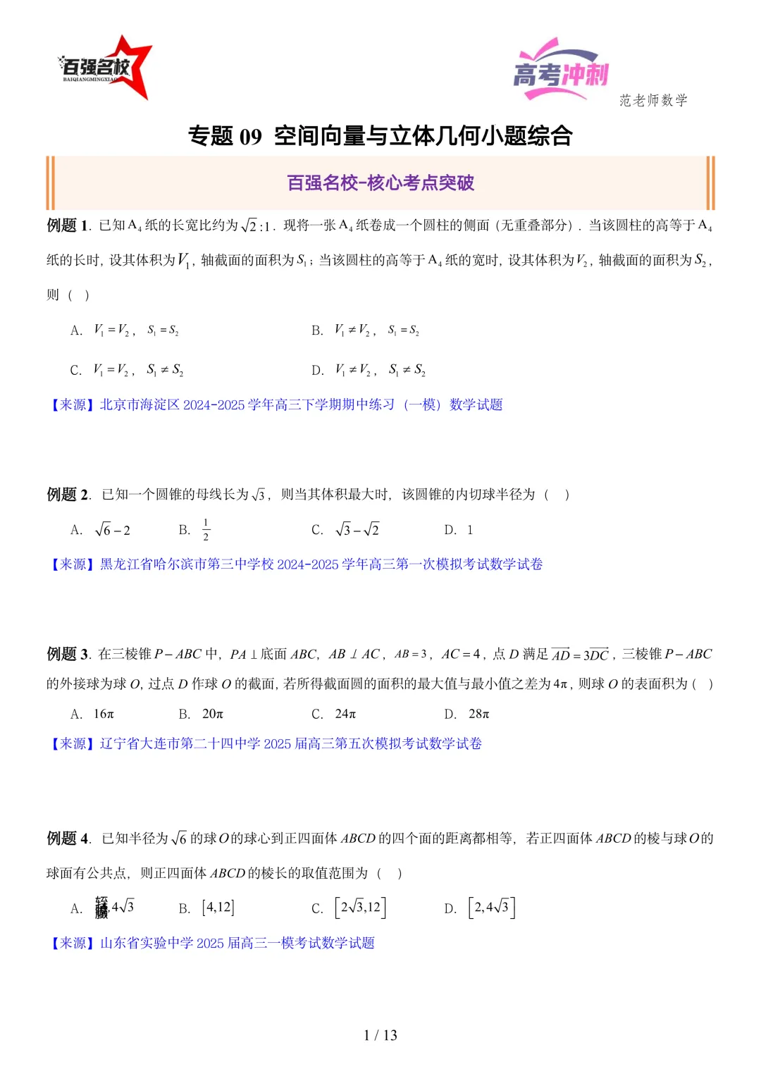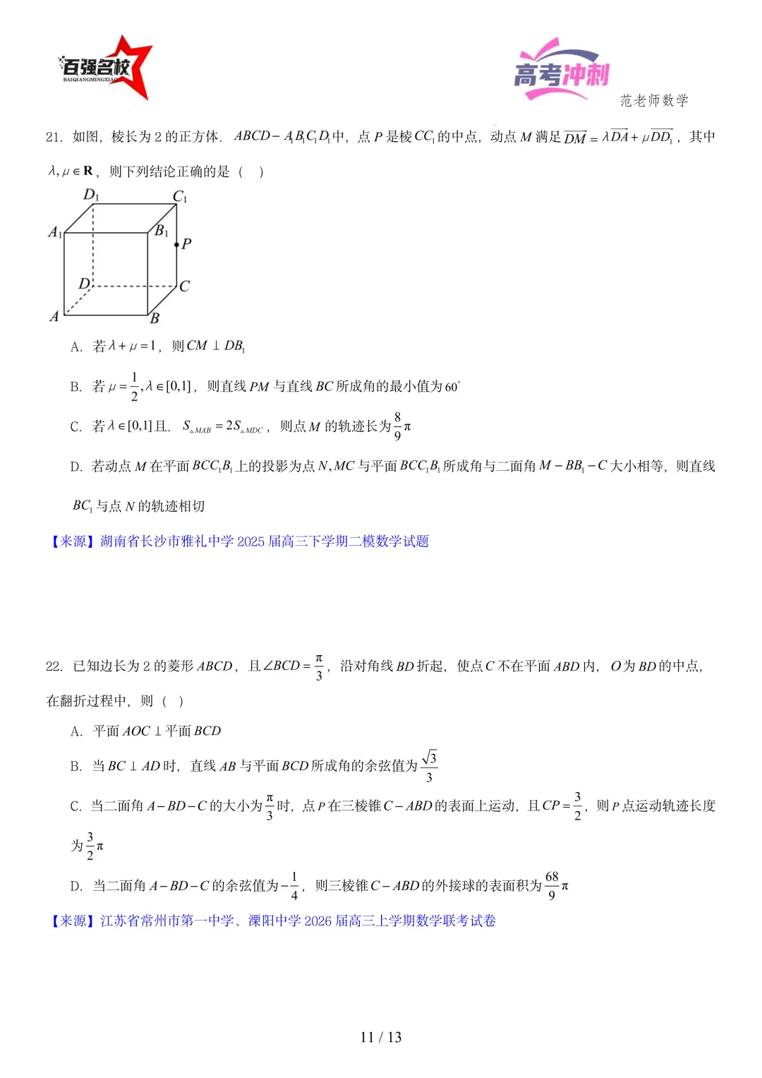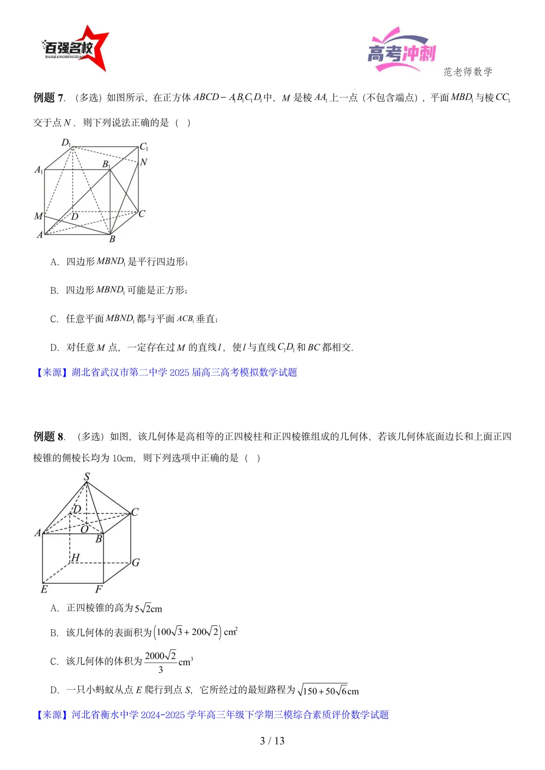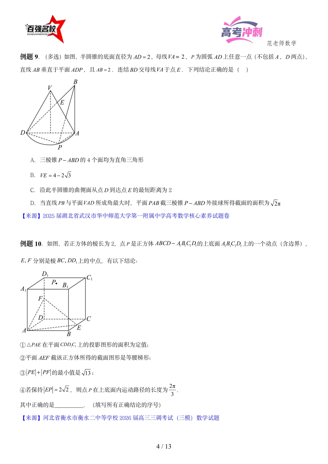 >2026最新版:高考数学百强名校立体几何小题常考题型以及解题技巧总结(可打印)