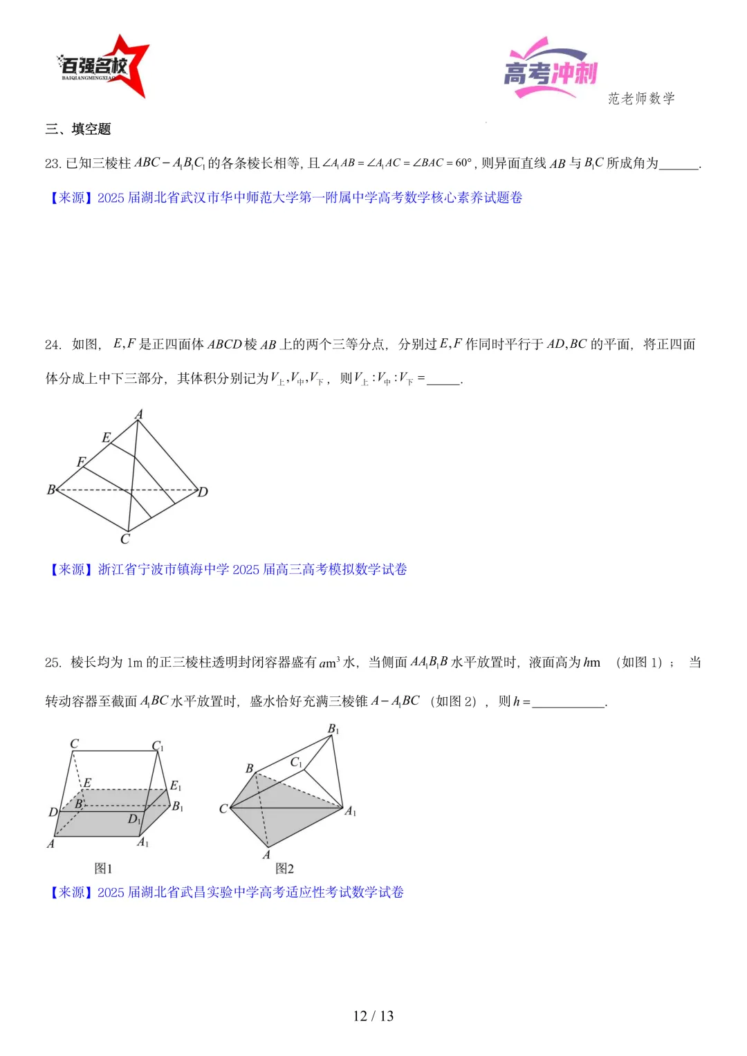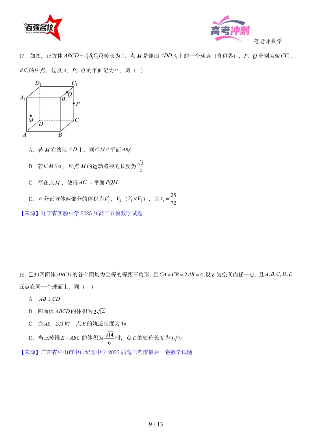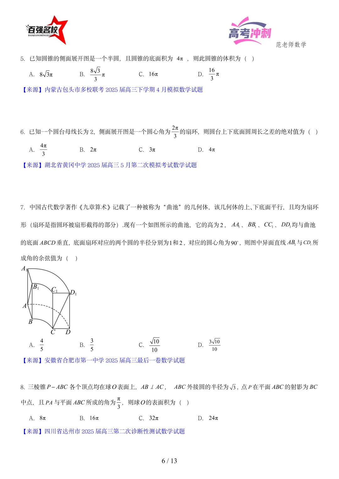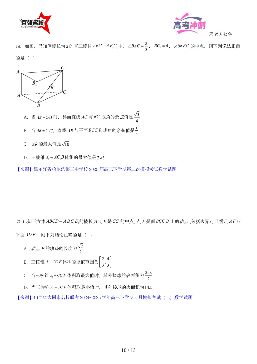 >2026最新版:高考数学百强名校立体几何小题常考题型以及解题技巧总结(可打印)