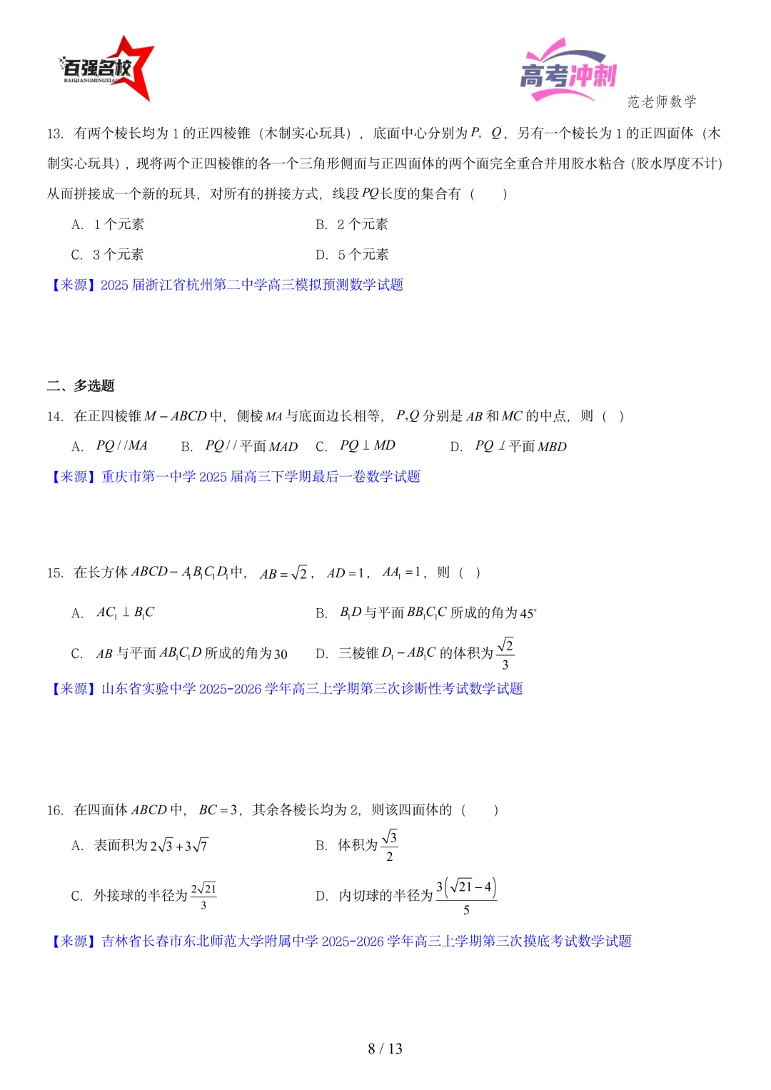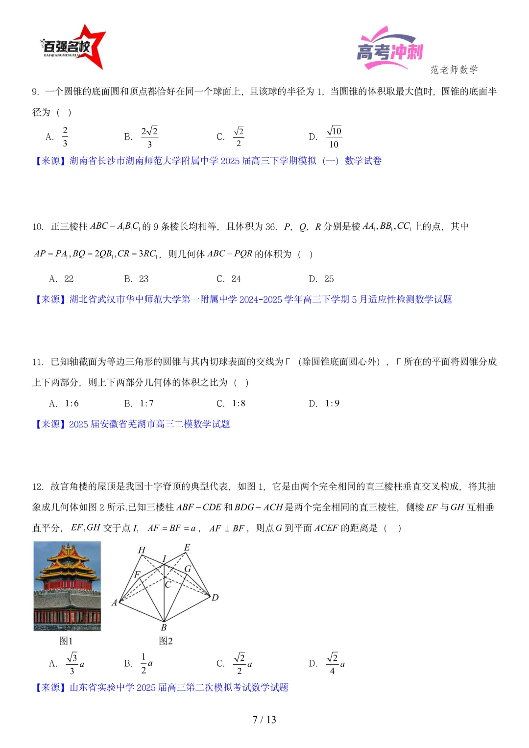 聚集百强名校最新真题好题