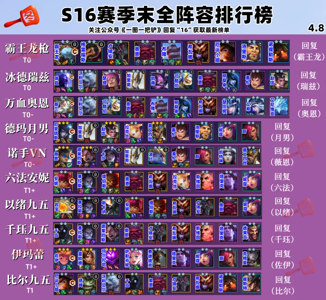 唯二T0诞生,金铲铲S16赛季末全阵容排行榜
