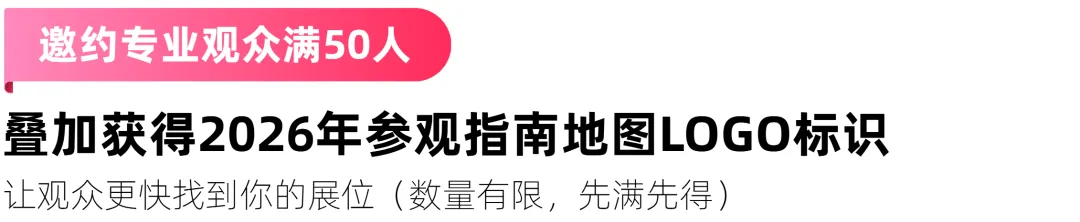 参展指南做为展会期间使用率最高得印刷品,能让观众更快找到你的展位(数量有限,先到先得)。累计邀约满50人的展商有: