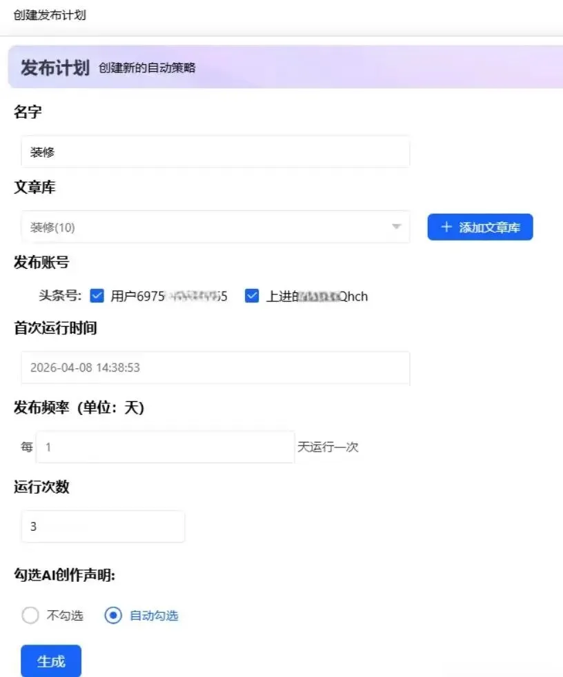 无需专业团队,初学者也能快速启动:授权账号→生成内容→一键发布,全程自动化。系统按品牌特点和产品信息,产出符合AI优化要求的优质文章,您仅需设置关键词和发布规则,余下由系统处理。