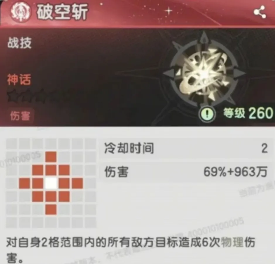 破空斩:对两格范围内造成多次物理伤害,2回合冷却,推测联动6转物理连打技能,类似大范围升级版旋风斩,评级NPC。