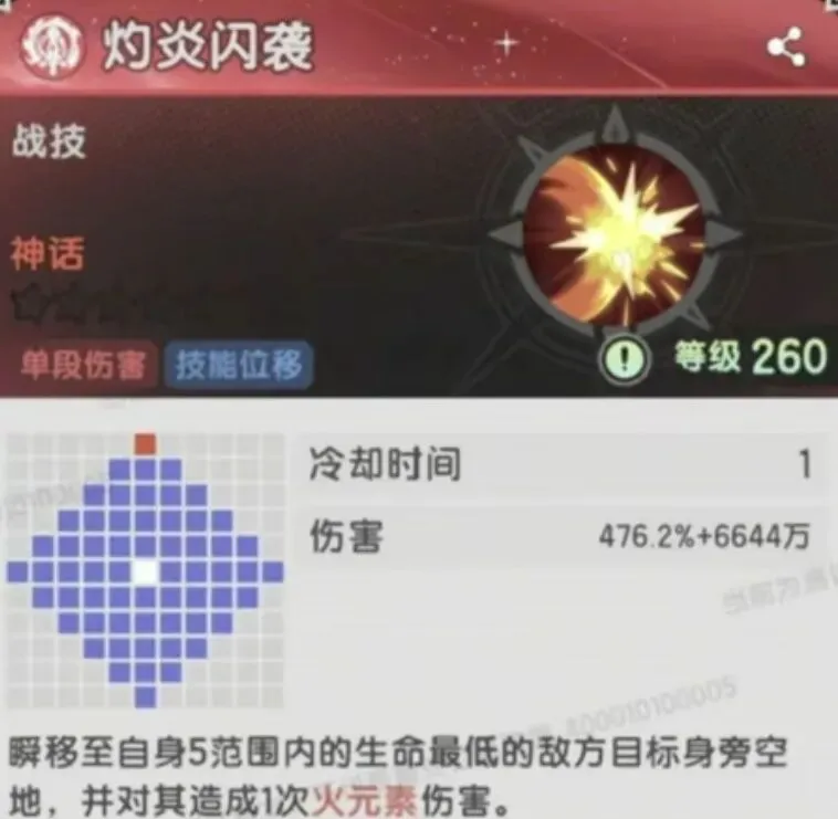 灼炎闪袭:1回合冷却,瞬移到5格内生命值最低敌方并造成伤害,是PVP神技(比如斗士解嘲讽后秒大C术士),评级小顶级。