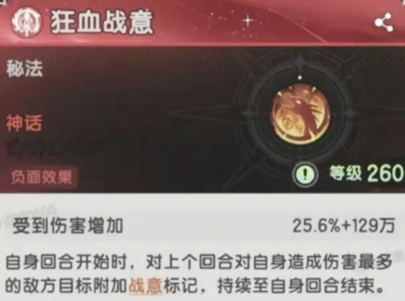 狂血战意:自身回合开始时,给上回合对自己伤害最高的敌人加易伤,PVP、PVE都适用,评级人上人。