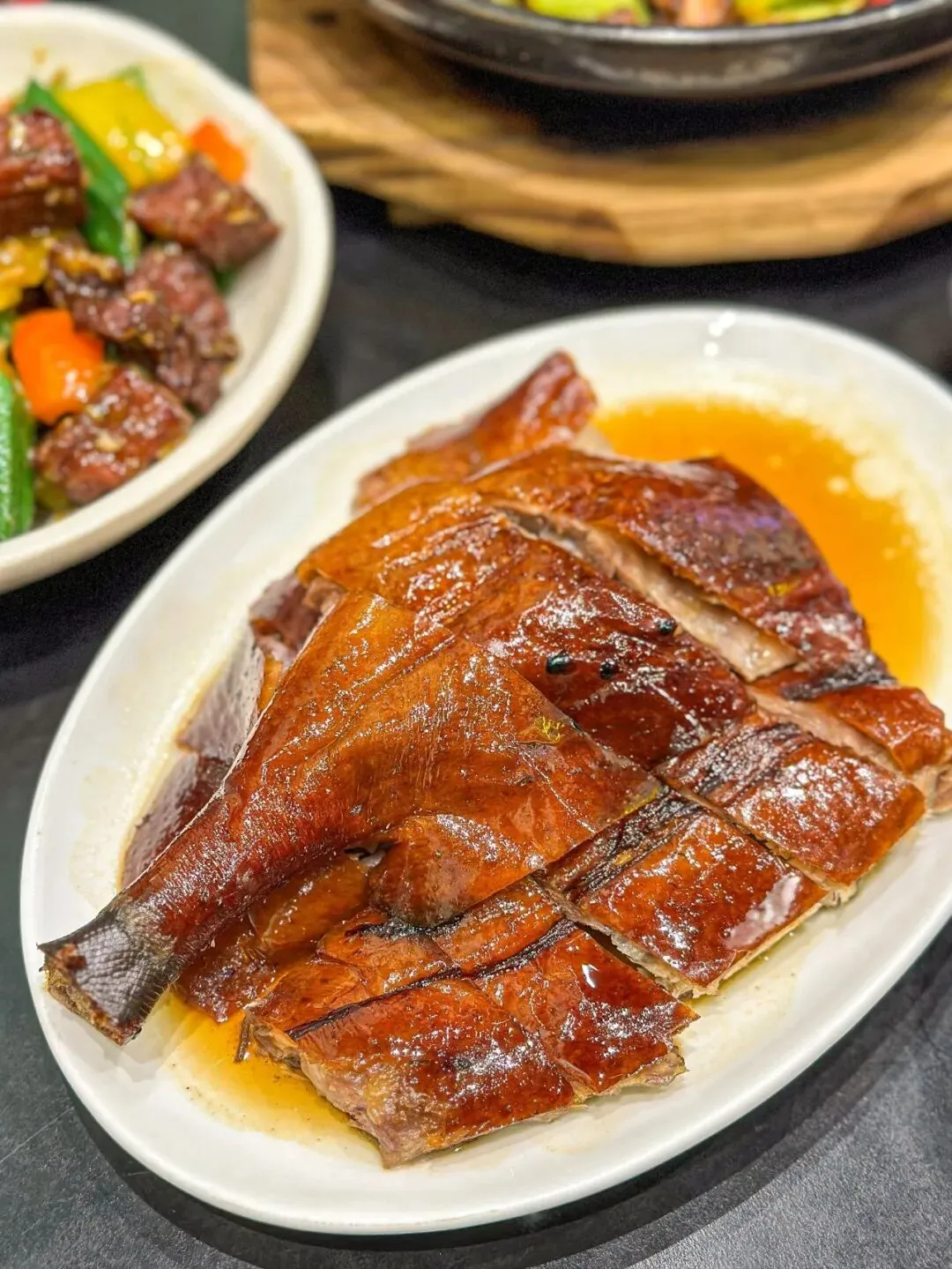 最绝的是用荔枝木明火烤,高温逼出油脂,皮才够脆。