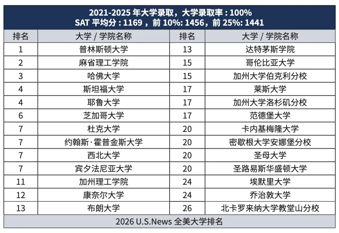 👍 学术升学卓越:22门AP课程,19门荣誉课程,100%升学率,直通全球名校。