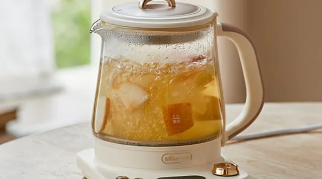 这款电热水壶配备了玻璃滤网和玻璃炖盅,这样在制作茶水的时候便是比较方便的,并且还可以有效的过滤掉内部的残渣。