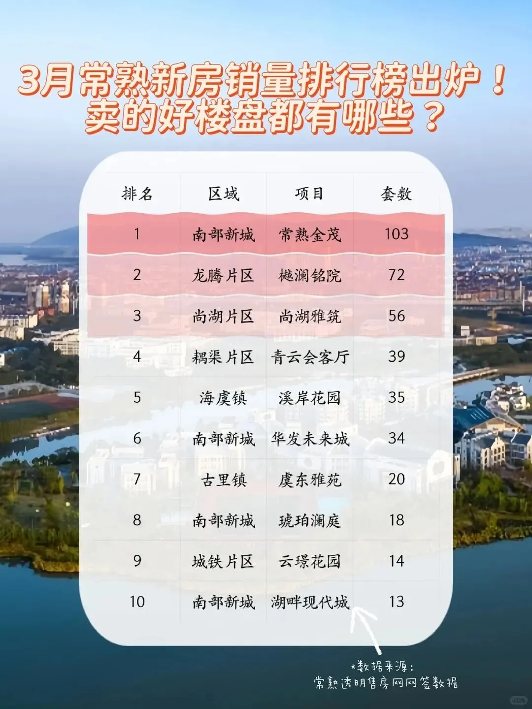3月份新房销量排行榜,常熟卖的好楼盘有哪些?