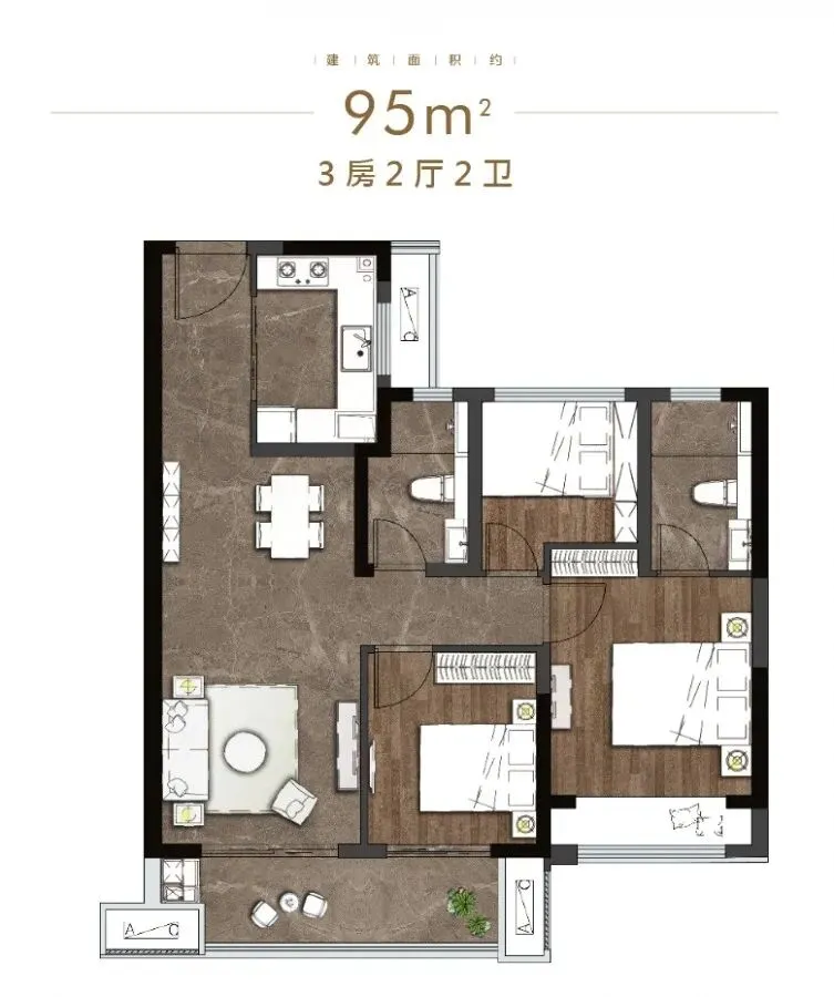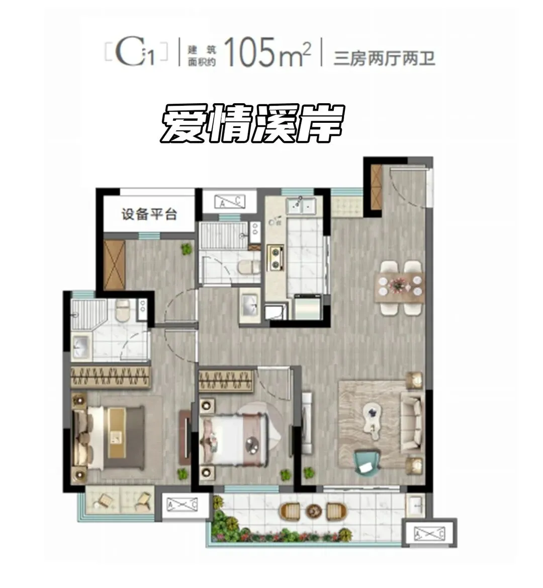 ,100平和110平两种户型。南部新城精装交付,位置在小区中间,