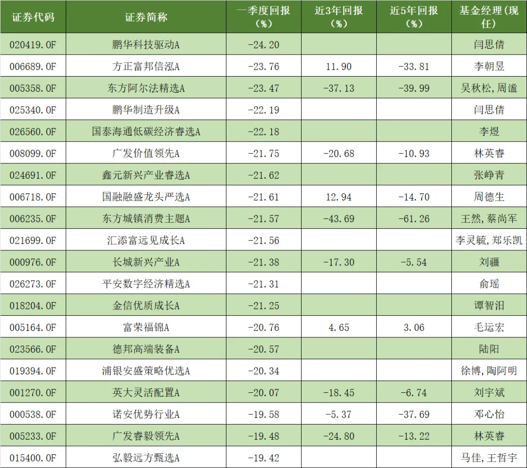 尽管仅过去三个月,已有十余只偏股混合型基金亏损幅度超过20%。其中,鹏华科技驱动A以24.20%的跌幅成为倒数第一,方正富邦信泓A紧随其后亏损23.76%。