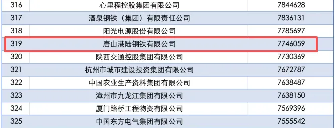 我市唐山港陆钢铁有限公司上榜
