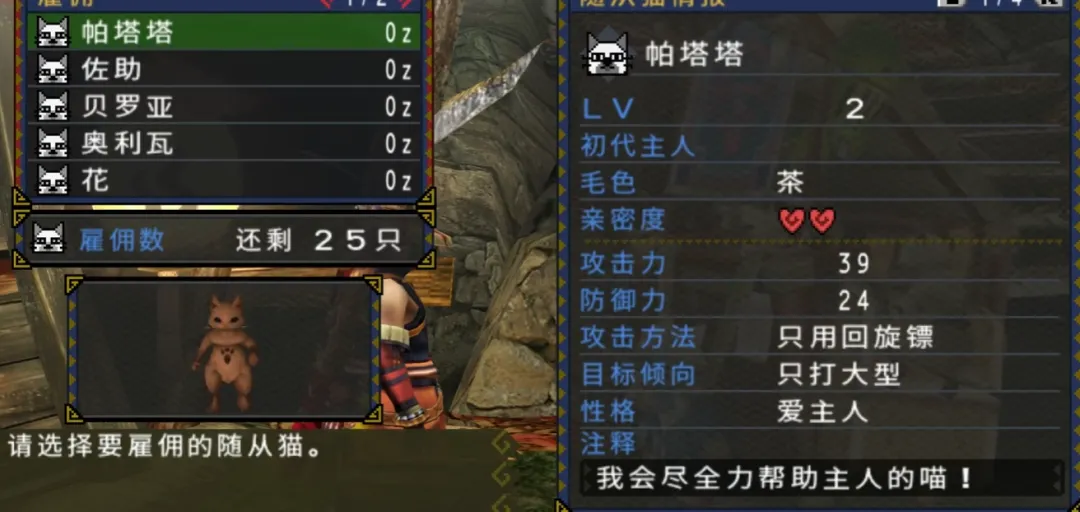 这一改动让随从猫从简单的辅助角色变成了真正的战斗伙伴。它们会与玩家共同分担怪物的仇恨,在战斗中提供治疗、设置陷阱等多种支援。不过老猎人们也提醒,新手最好不要带“爱好和平”或“胆小”的猫,因为它们有时会在关键时刻“坑”主人