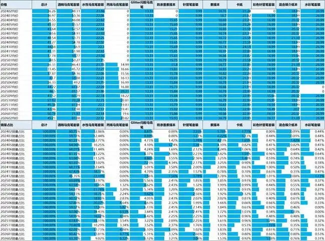 尤其在2025年8月后,均价($22-$24)明显高于素描本等其他品类,显示其溢价能力增强