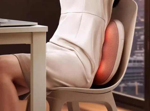 3.核心搭载3D动态牵引科技,支持10cm可调节高度,能精准贴合不同人群腰部曲线,配备脉冲理疗、热敷和震动三重功能。