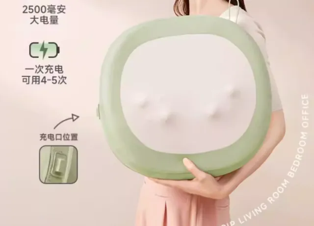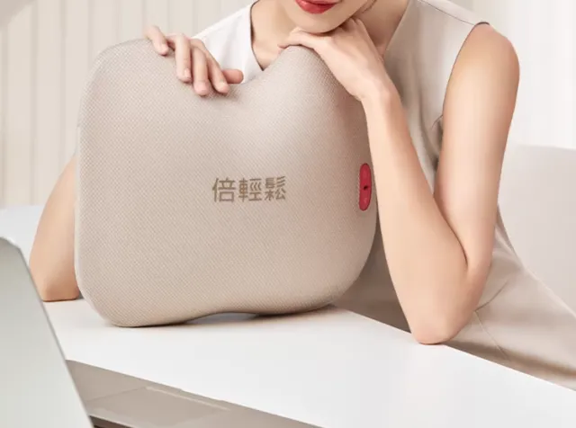 3.核心配备四向浮动按摩头,能贴合腰部轮廓精准按压,采用艾草桂花记忆棉材料,温和通畅经脉,搭配大面积按摩设计。
