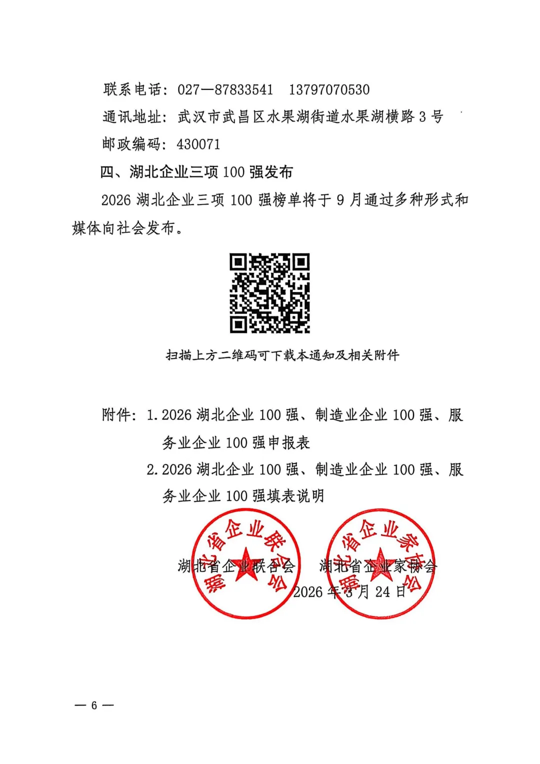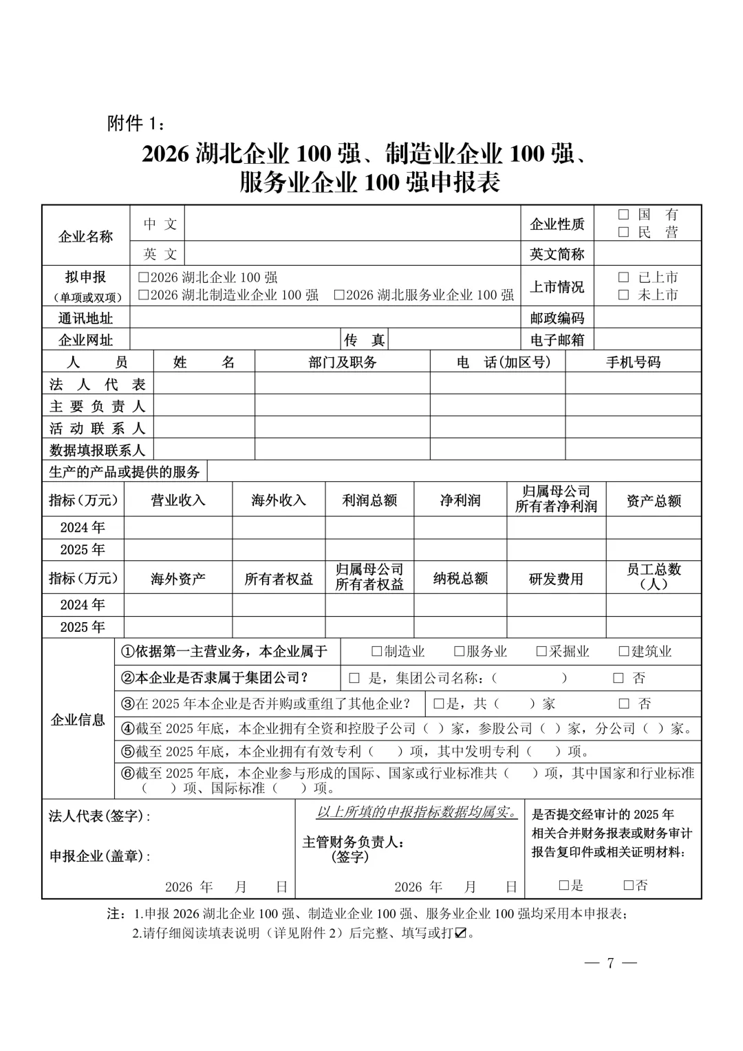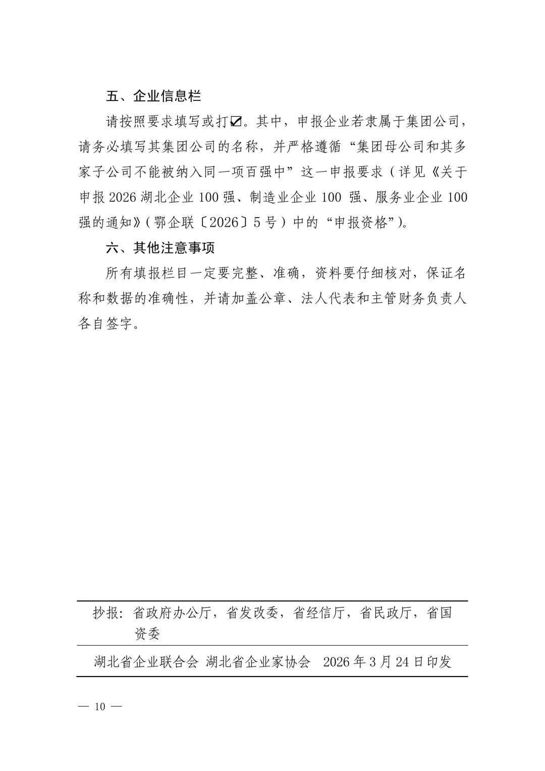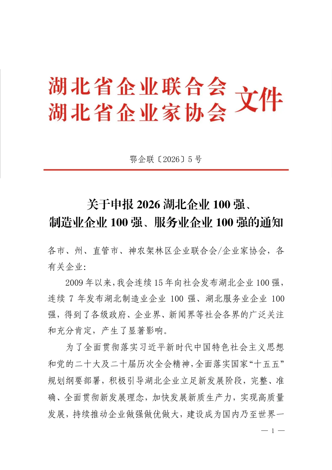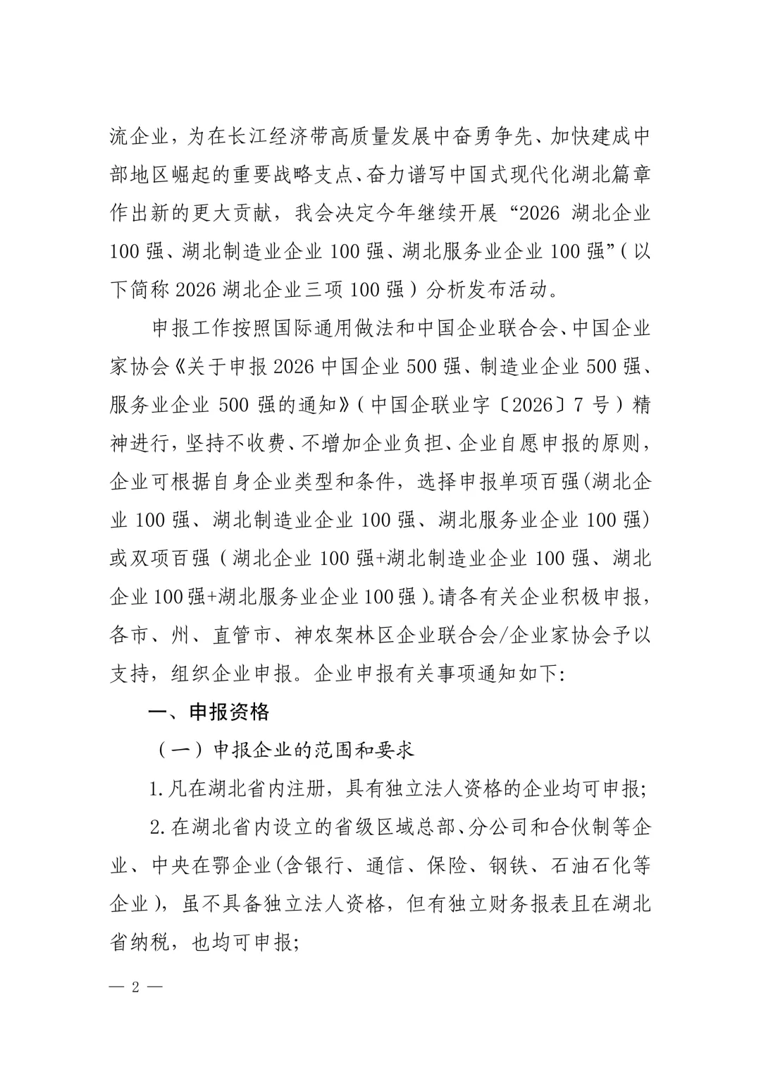 关于申报2026湖北企业100强、制造业企业100强、服务业企业100强的通知