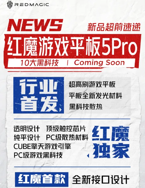 别愁,专门给游戏党做硬核装备的红魔,这回把目标对准了平板圈——万众期待的红魔游戏平板5 Pro,真的快要来了。