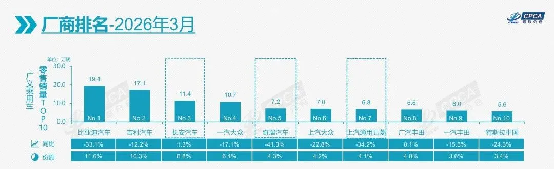 乘联会最新数据显示,一汽-大众、上汽大众今年3月合计市场份额为10.7%,高于吉利汽车,但落后于排名第一的比亚迪。尽管在合资品牌当中,大众依旧稳居第一,燃油车基本盘相当牢固。但新能源汽车的渗透率日益上升,留给大众的窗口期不多了。