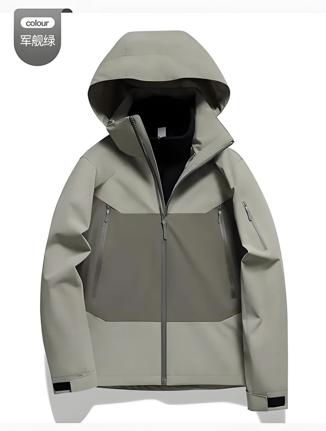 防水指数约11000mm,应对短时中雨够用;透湿率约8200g/㎡/24h,日常活动排湿表现平稳;防风依靠面料密度实现,搭配可调节袖口提升贴合度。定价适中,穿着舒适,适合喜欢户外风格穿搭的人群。