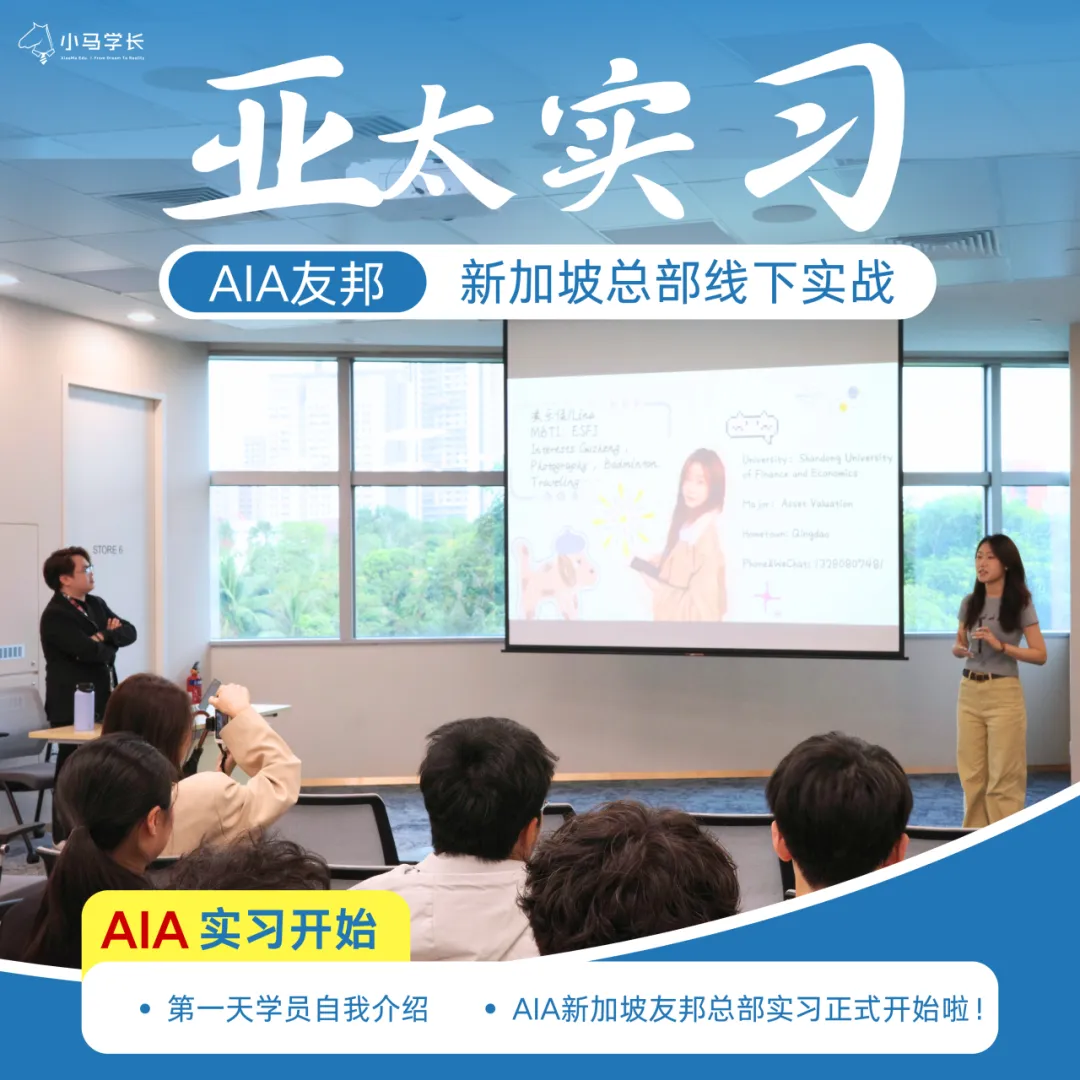 通过遴选的卓越学员将直抵AIA新加坡友邦亚太战略核心地总部,在集团高管与部门总监级导师的专属指导下,深度参与全球保险科技革新与高净值资产管理的实习项目。