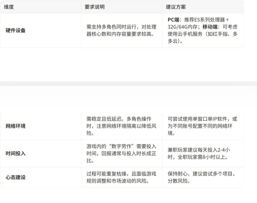 • 评价:初期投入可能较高(需购买角色或投入启动资金),但长期回报稳定。