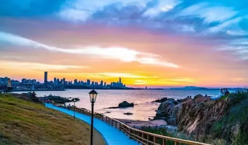 第八名:青岛小麦岛公园。凭借孤独树、橘子海日落走红,草坪、大海、日落构成治愈系画面,氛围感拉满。傍晚时分,坐在草坪上看日落,吹着海风,随手一拍都是文艺大片,是情侣约会、闺蜜打卡的绝佳选择。