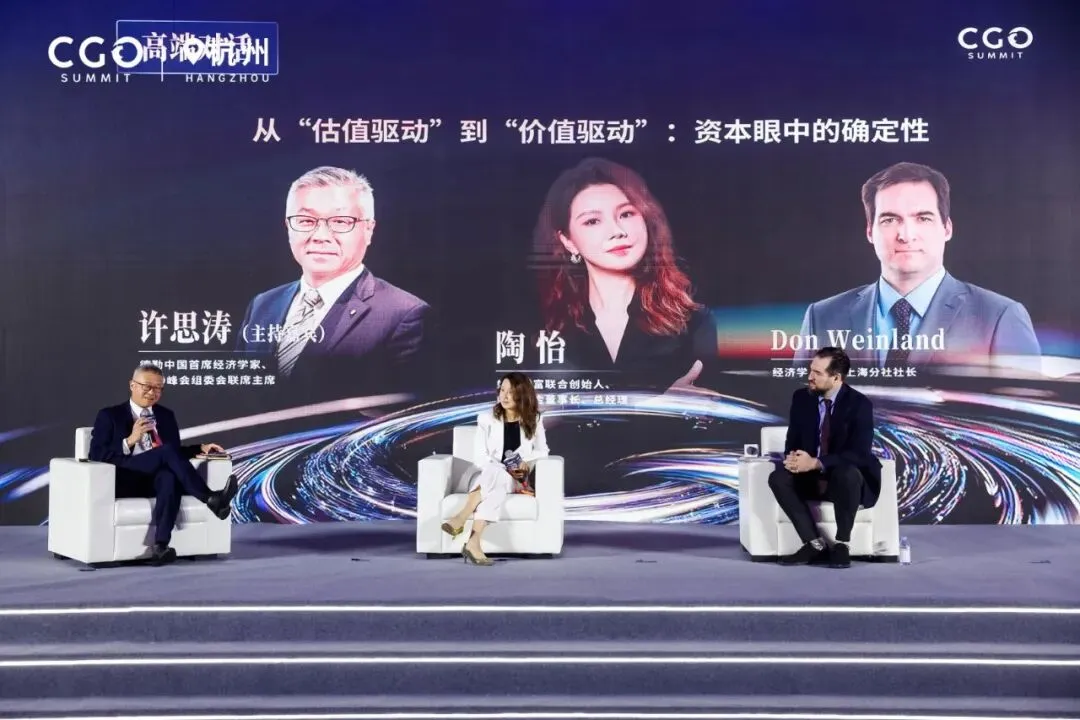 演讲结束后,许思涛继续对话好买财富联合创始人、好买基金董事长、总经理陶怡和经济学人杂志上海分社社长DonWeinland,共同探讨资本眼中增长的确定性。