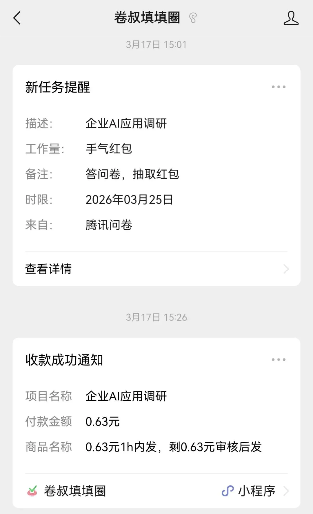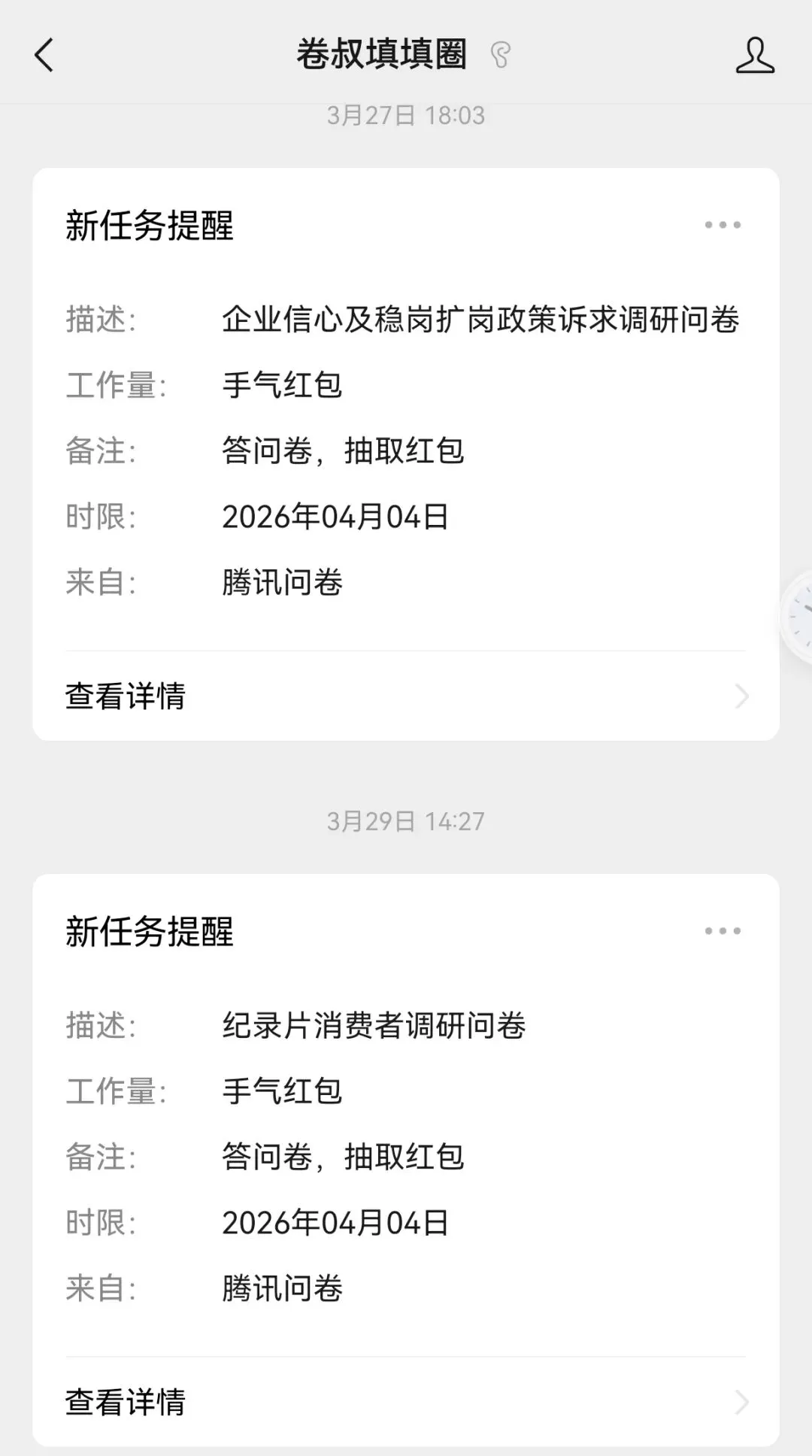 朋友们,最近发现了两个赚零花钱的新路子,只需要在手机上动动手指填填问卷,就能收到世界500强——腾讯(旗下的公司)——给你发的现金红包。