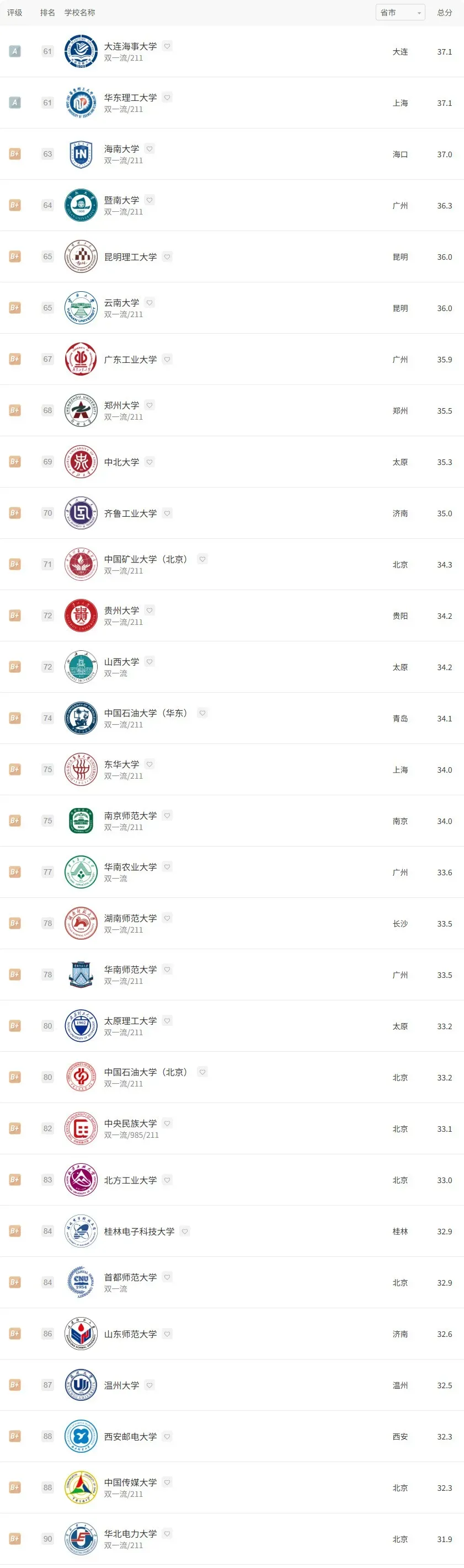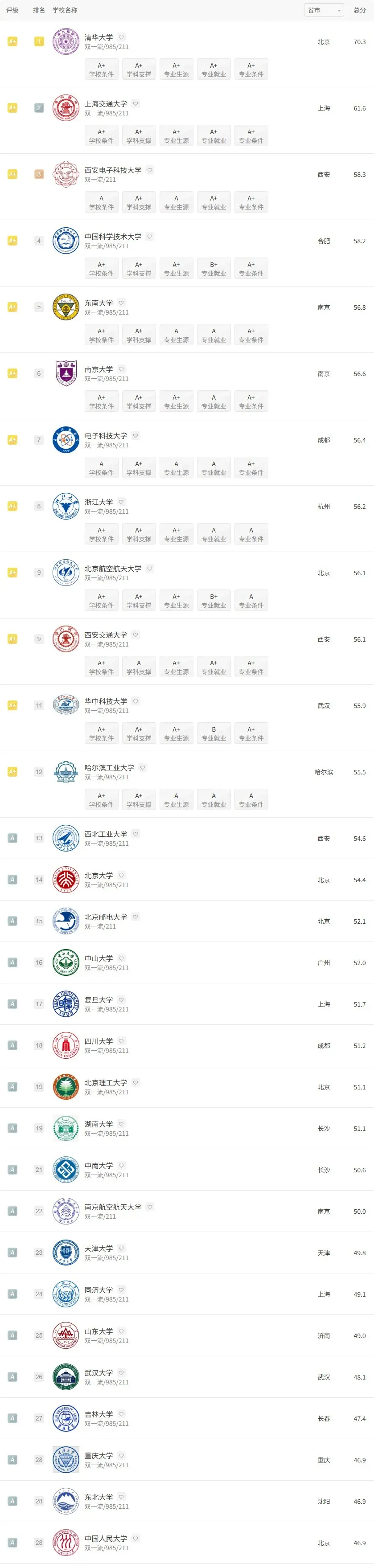 2025年软科中国大学专业排名